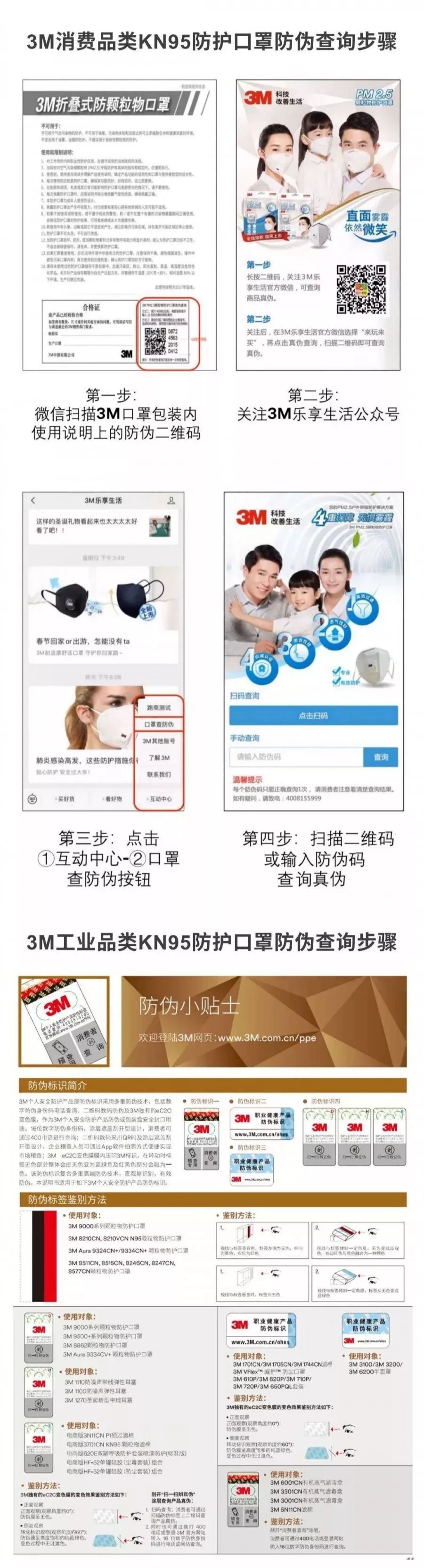 如果是買到盒裝3M N95/KN95系列口罩的話,可以通過上圖步驟,在3M樂享生活公眾號查詢防偽碼驗證真?zhèn)巍?/span>