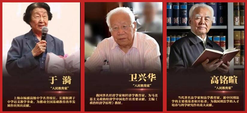 “授予國家勛章和國家榮譽(yù)稱號(hào),是對(duì)作出突出貢獻(xiàn)的杰出人士授予的國家最高榮譽(yù)。”于漪、高銘暄、衛(wèi)興華被授予“人民教育家”國家榮譽(yù)稱號(hào)。