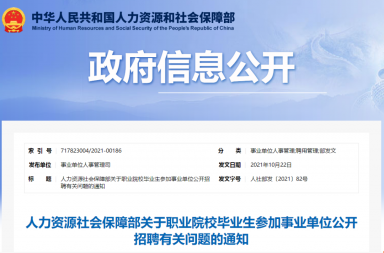 近日,人力資源社會(huì)保障部印發(fā)《關(guān)于職業(yè)院校畢業(yè)生參加事業(yè)單位公開招聘有關(guān)問題的通知》(以下...