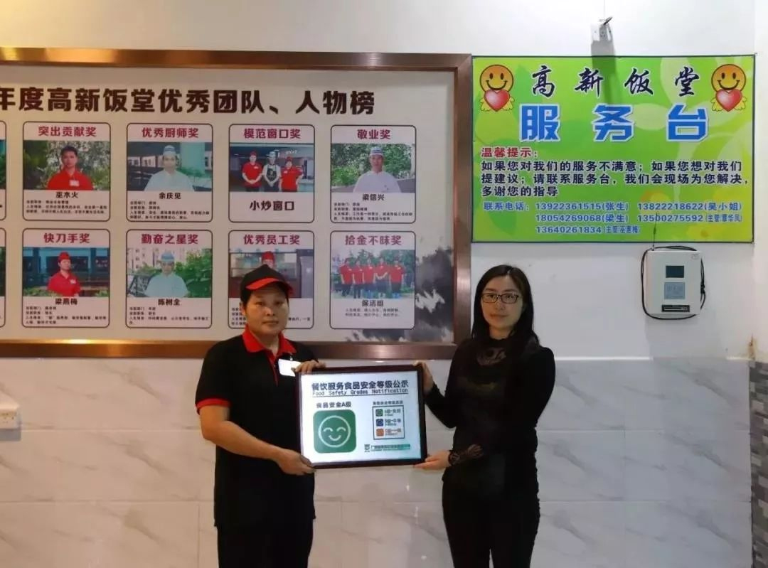 高新技校的兩所食堂已經(jīng)連續(xù)幾年被廣東省食品藥品監(jiān)督管理局評為“餐飲服務(wù)食品安全量化分級管理A級示范食堂”,學(xué)校所有的原料供應(yīng)商都經(jīng)公開招標(biāo)進行采購,保證食品安全和質(zhì)量。從食材采購到加工、供餐進行全過程數(shù)字化監(jiān)控。