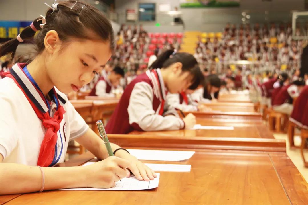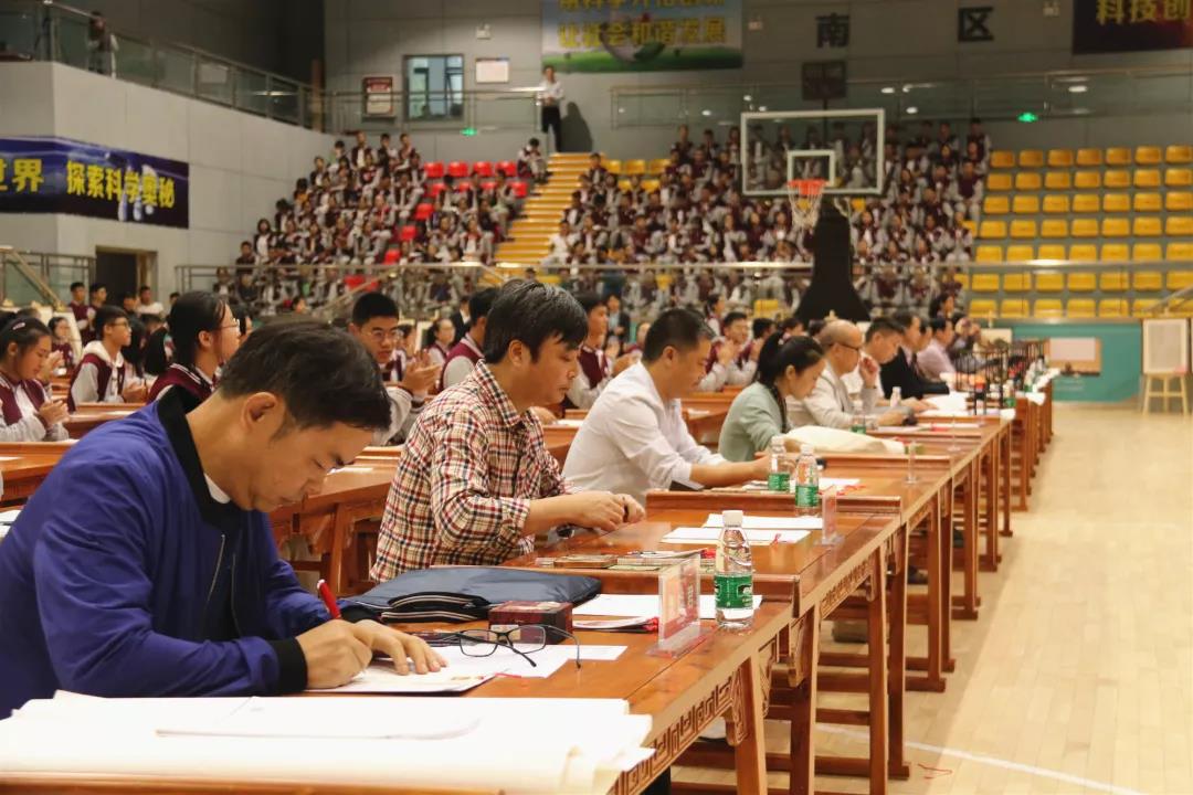 一進入健行館,一股書香氣息便迎面撲來——只見偌大的館內(nèi),規(guī)規(guī)整整地擺放著一列列古色古香的桌椅,上面都工工整整擺放著文房四寶——筆、墨、紙、硯。是的,體育館似乎不再是體育館了,而是一座具有深厚人文底蘊的書房。