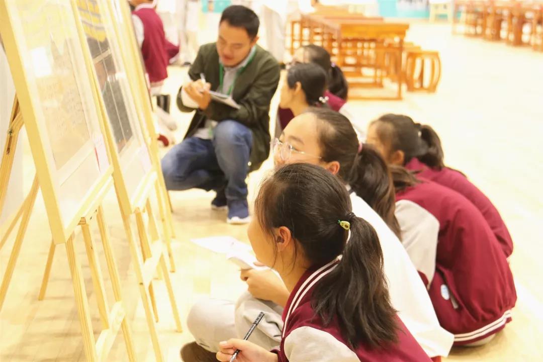 參展的一百多幅書法作品,仿佛被賦予了生命。孩子們分組觀摩書法作品,他們用心體會著書法里蘊含的詩歌、繪畫、舞蹈和音樂,在濃厚的墨香氛圍中,感受著傳統(tǒng)文化的無邊魅力。