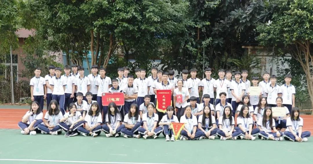18藥劑1班主任李時偵老師、19美容1班主任管文雅老師、18美容2班主任寧秀霞老師與領(lǐng)獎班級代表合影