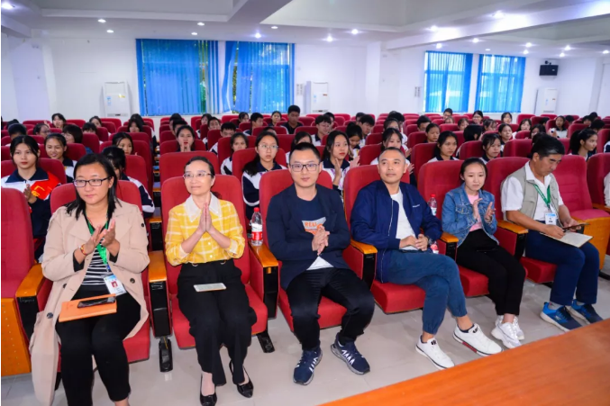 谷希歐公司董事長(zhǎng)袁應(yīng)權(quán)、總經(jīng)理陳彥榮、業(yè)務(wù)骨干雷麗紅,高新技校校長(zhǎng)助理孫建華、教務(wù)處處長(zhǎng)田春元、經(jīng)貿(mào)系主任向莎莎、商務(wù)外語專業(yè)負(fù)責(zé)人劉敏、17商務(wù)外語高技班主任陳靜儀、商務(wù)外語組全體教師出席了儀式,17商務(wù)外語高技班全體同學(xué)來到了現(xiàn)場(chǎng)。17商英高技班諸敏同學(xué)擔(dān)任了本次儀式的主持。