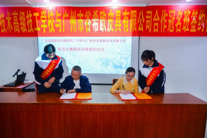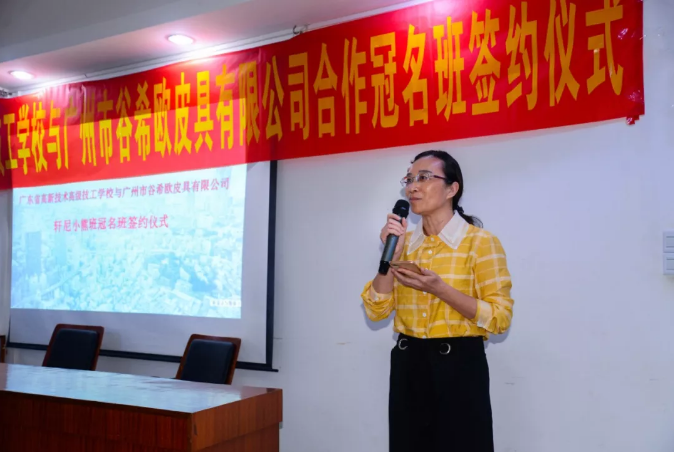 10月28日下午4:30,廣東省高新技術(shù)高級(jí)技工學(xué)校與廣州市谷希歐皮具有限公司合作冠名班簽約儀式于學(xué)校天培樓會(huì)議室舉行。