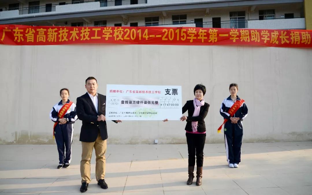 廣東省高新技術(shù)高級技工學(xué)校發(fā)展基金會成立于2012年,由張?zhí)炫嘈iL發(fā)起,基金會堅持中國共產(chǎn)黨的領(lǐng)導(dǎo),踐行社會主義核心價值體系,遵守社會風(fēng)尚,堅持以“資助品學(xué)優(yōu)良的特困學(xué)生,幫助他們擺脫困境,激勵他們發(fā)奮讀書、立志成才;全力關(guān)愛困難教職工,傳遞溫暖、愛心互助”為愿景。2014年,張?zhí)炫嘈iL向基金會捐助17.5萬元。