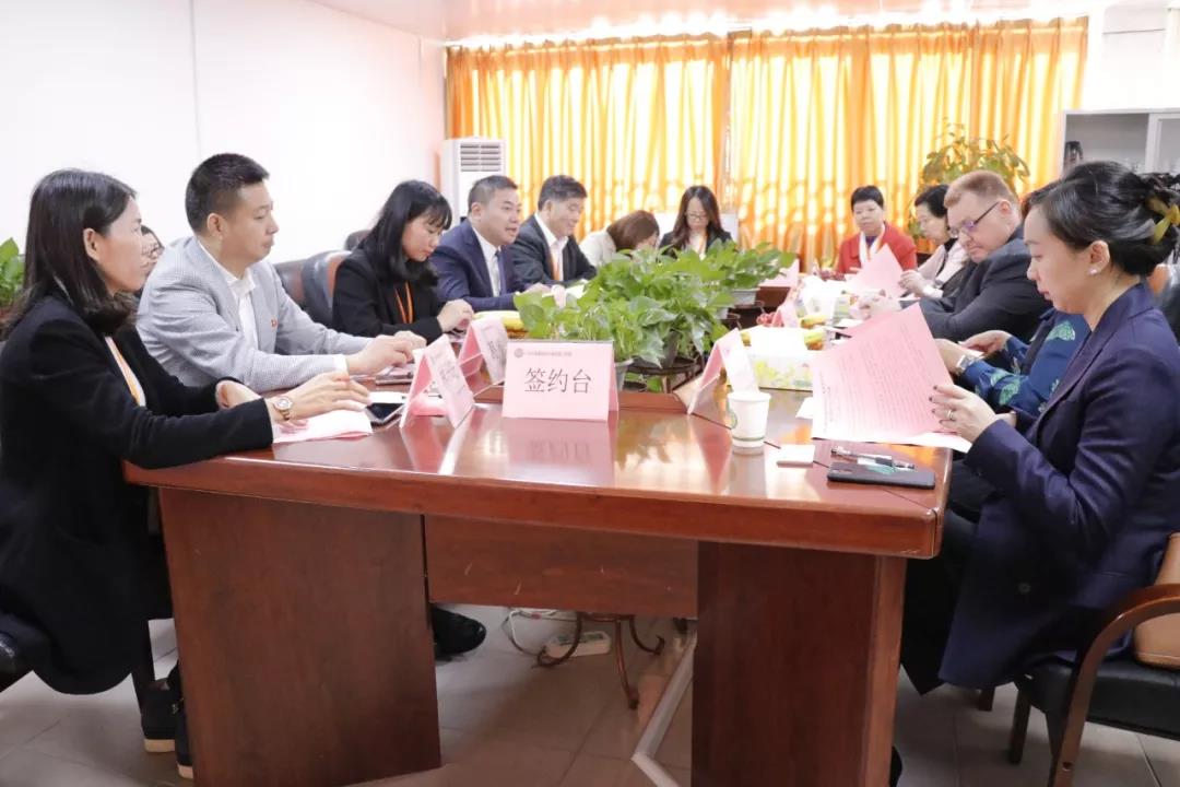 由EHI校長(zhǎng)Mr.Stuart與我校常務(wù)副校長(zhǎng)麥文婷簽署,澳大利亞政府貿(mào)易投資委員會(huì)商務(wù)官員周覓瓊與高新教育集團(tuán)董事長(zhǎng)張?zhí)炫嘣谂砸?jiàn)證。