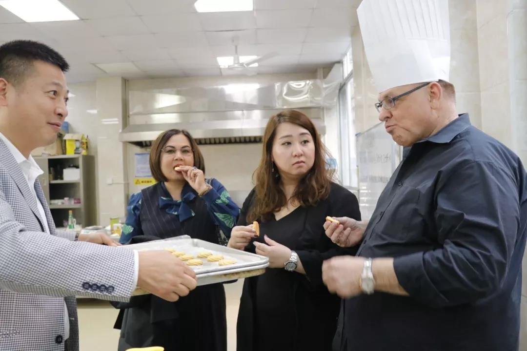 參觀過(guò)程中,來(lái)賓們對(duì)我校中餐烹調(diào)及面點(diǎn)制作課堂表現(xiàn)出強(qiáng)烈的興趣,Mr.Stuart表示,這樣的課堂氛圍非常好,學(xué)生以小組為單位,大家相互協(xié)作,凝結(jié)智慧,制作出的作品都是獨(dú)一無(wú)二的。