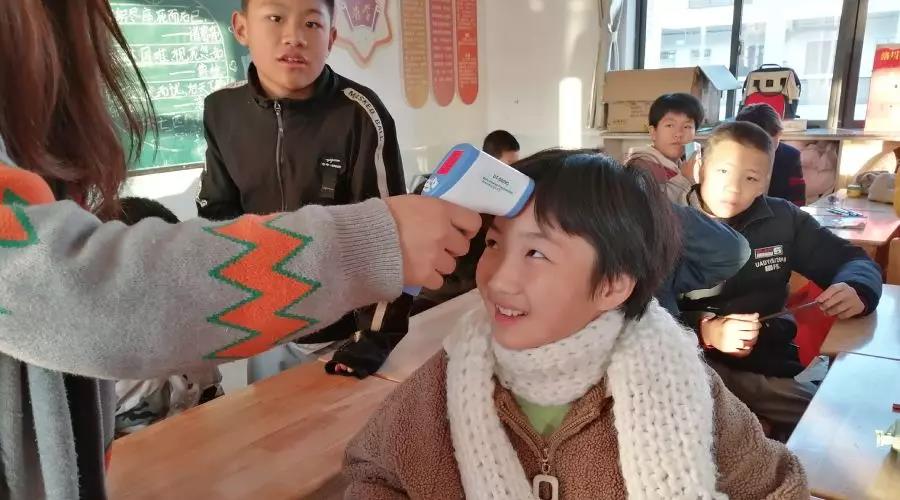 學(xué)校還給每個班分發(fā)了電子智能體溫計。班主任老師每天早、中、晚三次為每個孩子測量體溫,如有特殊情況,立即記錄并上報。