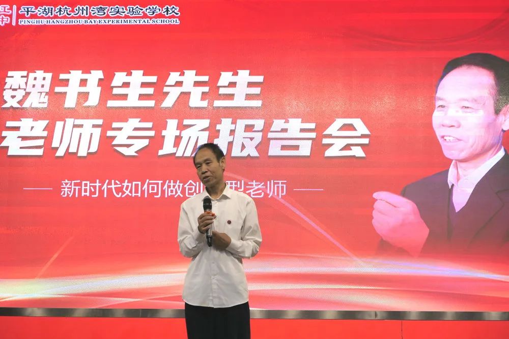 2020年9月15日上午,被喻為“穿西裝的孔子”的當(dāng)代教育家魏書生來我校為全體教職工進(jìn)行以“新時(shí)代如何做創(chuàng)新型老師”為主題的專場(chǎng)思想報(bào)告會(huì)。嘉興教育學(xué)院處長(zhǎng)沈俊松先生,嘉興港區(qū)社發(fā)局文教衛(wèi)副書記顧巧明先生,平湖實(shí)驗(yàn)小學(xué)教育集團(tuán)黨委書記、總校長(zhǎng)芮金良先生,乍浦高級(jí)中學(xué)黨總支書記、校長(zhǎng)曹躍平先生,平湖實(shí)驗(yàn)小學(xué)教育集團(tuán)副總校長(zhǎng)、毓秀小學(xué)校長(zhǎng)湯麗英女士,平湖杭州灣實(shí)驗(yàn)學(xué)校理事長(zhǎng)肖家興博士,北大親子教育專家孫一鳴老師,海寧市南苑中學(xué)、嘉興市城南中學(xué)、嘉興市運(yùn)河實(shí)驗(yàn)學(xué)校、嘉興市城南小學(xué)等學(xué)校,以及平湖市、港區(qū)兄弟學(xué)校的老師們紛紛慕名而來,聆聽長(zhǎng)者教誨。