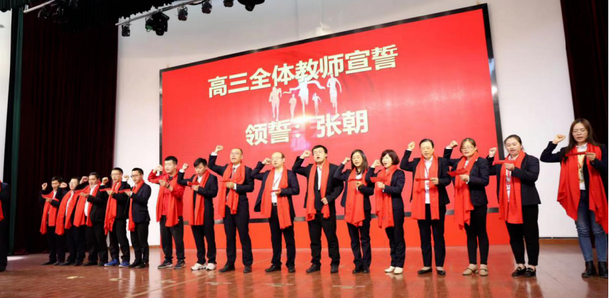鮮紅的圍巾飄揚(yáng),老師們莊嚴(yán)宣誓,像軍師一般,為同學(xué)們定軍心、昂斗志,讓同學(xué)們知道,高考不是我們獨(dú)自的戰(zhàn)場(chǎng),老師們永遠(yuǎn)與我們一起戰(zhàn)斗。