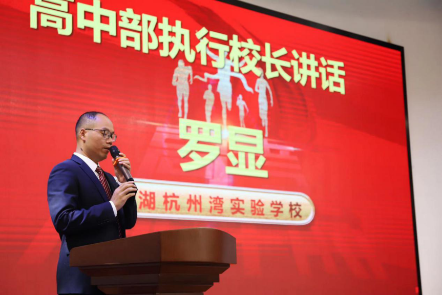 高中部執(zhí)行校長(zhǎng)羅顯發(fā)言,羅校長(zhǎng)強(qiáng)調(diào)三點(diǎn):一、堅(jiān)定首考必勝的信念;二、嚴(yán)格按照計(jì)劃復(fù)習(xí);三、每一個(gè)人都要竭盡全力。羅校長(zhǎng)以獵狗和兔子的寓言故事告訴同學(xué)們盡力而為與竭盡全力的區(qū)別,激勵(lì)同學(xué)們要在首考竭盡全力,用拼搏決勝高考,提前奠定高考基石!