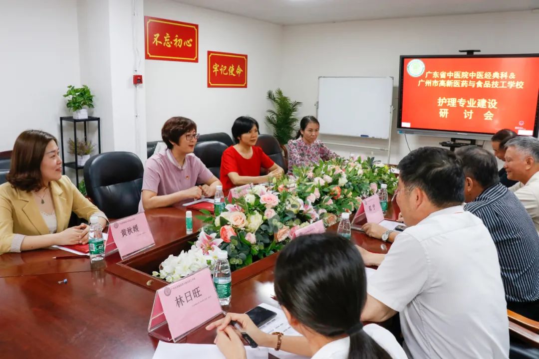 課后,省中醫(yī)經(jīng)典科護(hù)理團(tuán)隊(duì)4位老師一同出席關(guān)于我校護(hù)理專業(yè)建設(shè)的研討會。雙方就護(hù)理專業(yè)方面的合作展開討論,表達(dá)合作意愿。