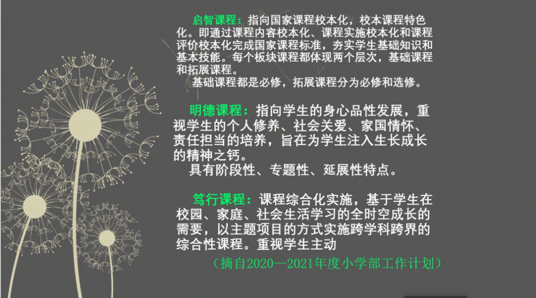 小學(xué)部鐘小娟校長結(jié)合小學(xué)部現(xiàn)有的特色課程作了《課程理念與實施》主題報告。