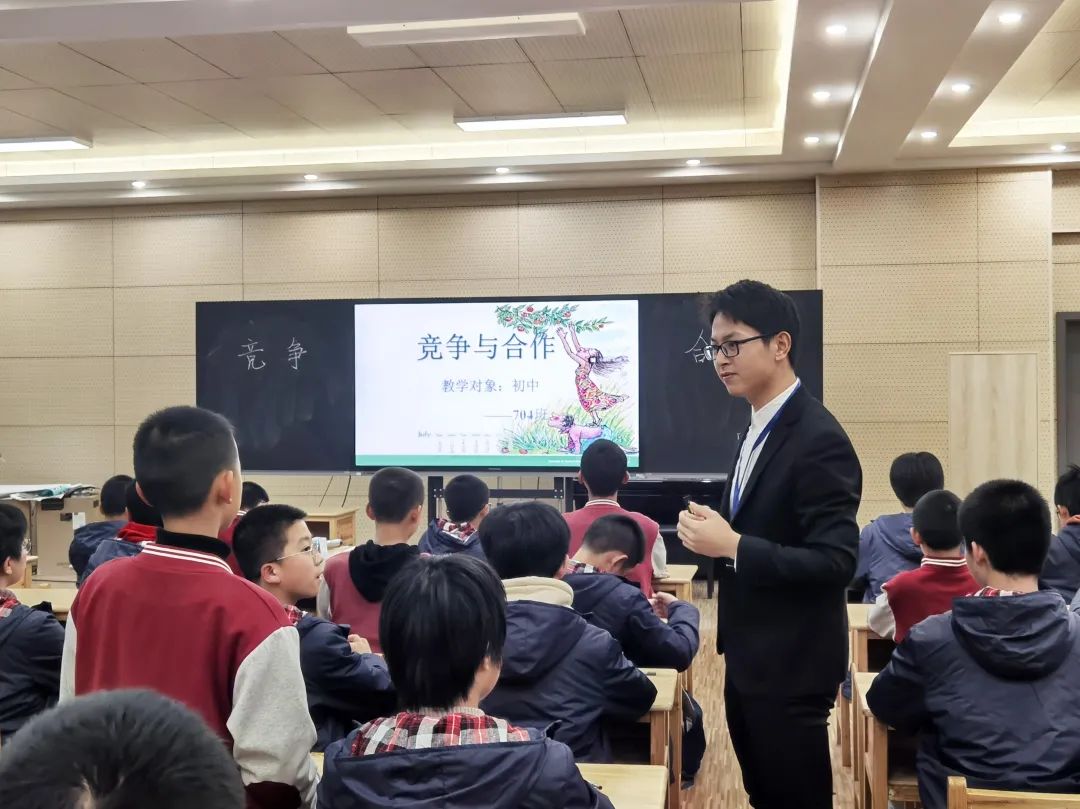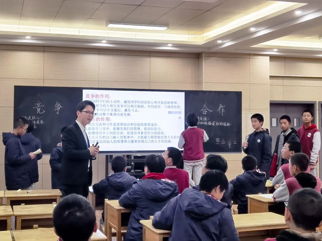 七六班班主任常雪晴老師和七四班班主任李金龍老師,實(shí)現(xiàn)了班會課的同題異構(gòu),都已《競爭與合作》為主題,共同探討了競爭與合作的關(guān)系。